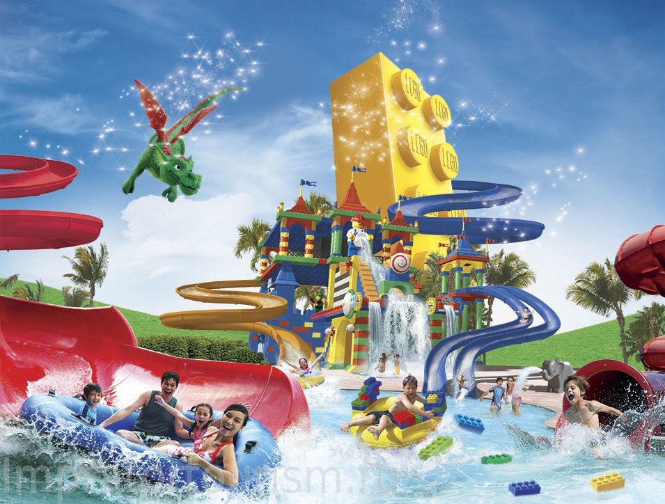 Футуристичный аквапарк Yas Waterworld занимает территорию, равную 15 футбольным полям, и располагает 43 горками, спусками и аттракционами, пять из которых не имеют аналогов во всем мире. Гости аквапарка могут оценить первую и самую большую на планете гидромагнитную водную горку-торнадо с шестиместным спуском протяженностью 235 метров. Экстремалов ждет крупнейшая волновая установка с трехметровыми волнами Bubble’s Barrel для флоубординга и бодибординга. 550-метровые американские горки Bandit Bomber — первый аттракцион такого типа с лазерными эффектами и пушками с водой. Находясь на аттракционе, можно запускать спецэффекты, стрелять водой по целям и бросать «водяные бомбы», в то время как находящиеся внизу люди могут отстреливаться в ответ. Новейшая достопримечательность парка — гигантская жемчужина диаметром в восемь метров, которая покоится на вершине головокружительной горы Jebel Dana. Стилистика аквапарка обращается к наследию Абу-Даби и основана на истории эмиратской девочки, отправившейся на поиски легендарной жемчужины. Посетители аквапарка совершают это путешествие вместе с ней, переходя от аттракциона к аттракциону, в число которых входит базар и ныряние за жемчугом. 4.Аквапарк Леголенд ( Дубай)